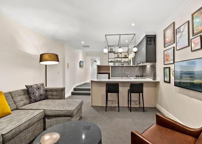 Kozyguru | Sydney Cbd | Stylish Studio de 60 m² est situé à seulement 200 m de la gare Circular Quay et à moins de 5 minutes de marche du Musée Susannah Place. Vous pourrez vous détendre au bord d'une piscine avant de vous rafraîchir.